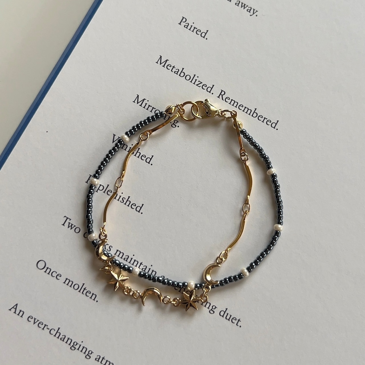 ビーズとチェーンの重ね付け⋆✴︎˚