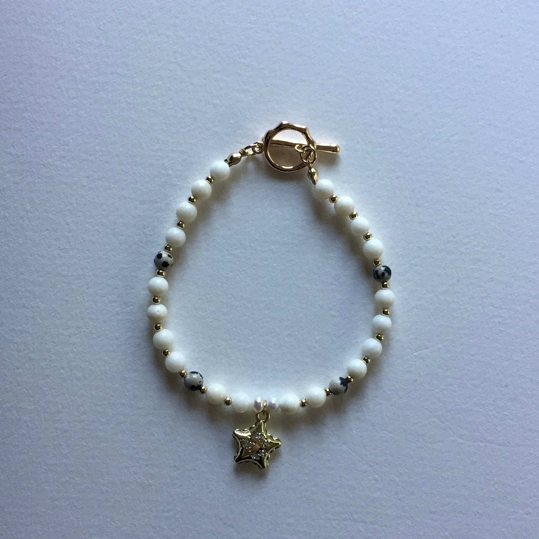 冬にピッタリなwhite×goldの中に、カジュアルな雰囲気にもしてくれるダルメシアンジャスパーを入れ込んでいます⋆꙳
