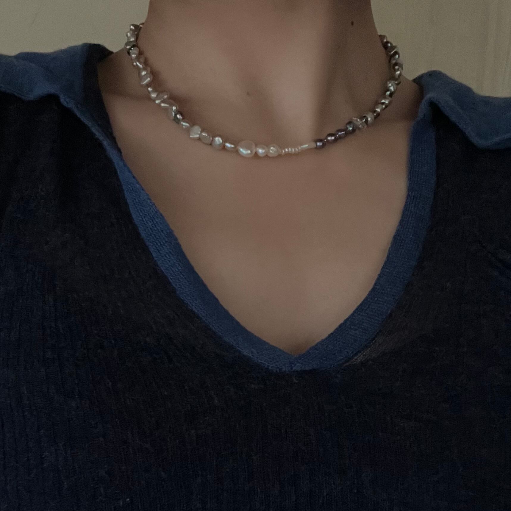 鎖骨にかかるサイズ感なので、デコルテ周りのスッキリとしたお洋服と合わせて更に女性らしく身につけて頂くのがオススメです。