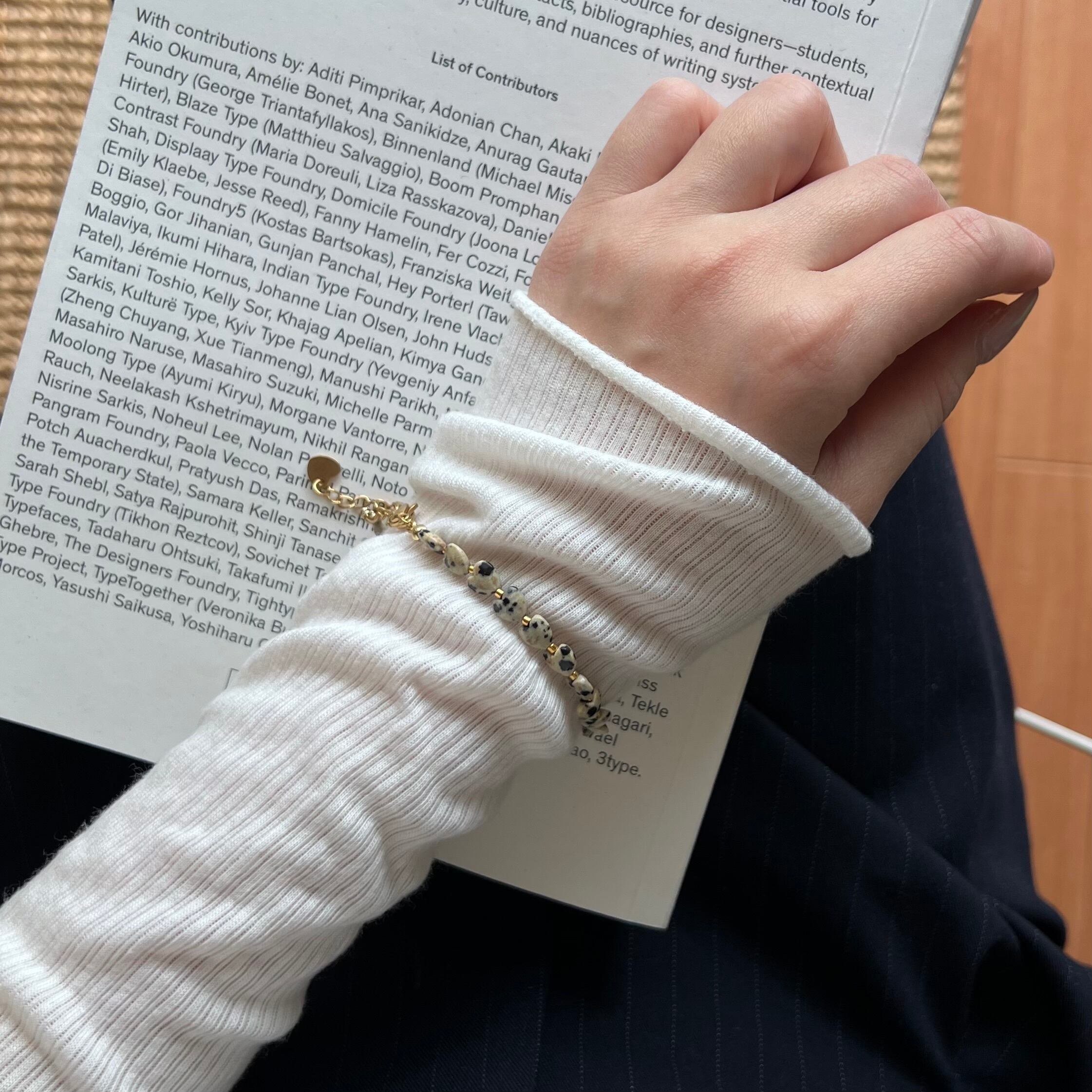 gold beadsで繋ぎ、よりカジュアルに身につけられるデザインに。
