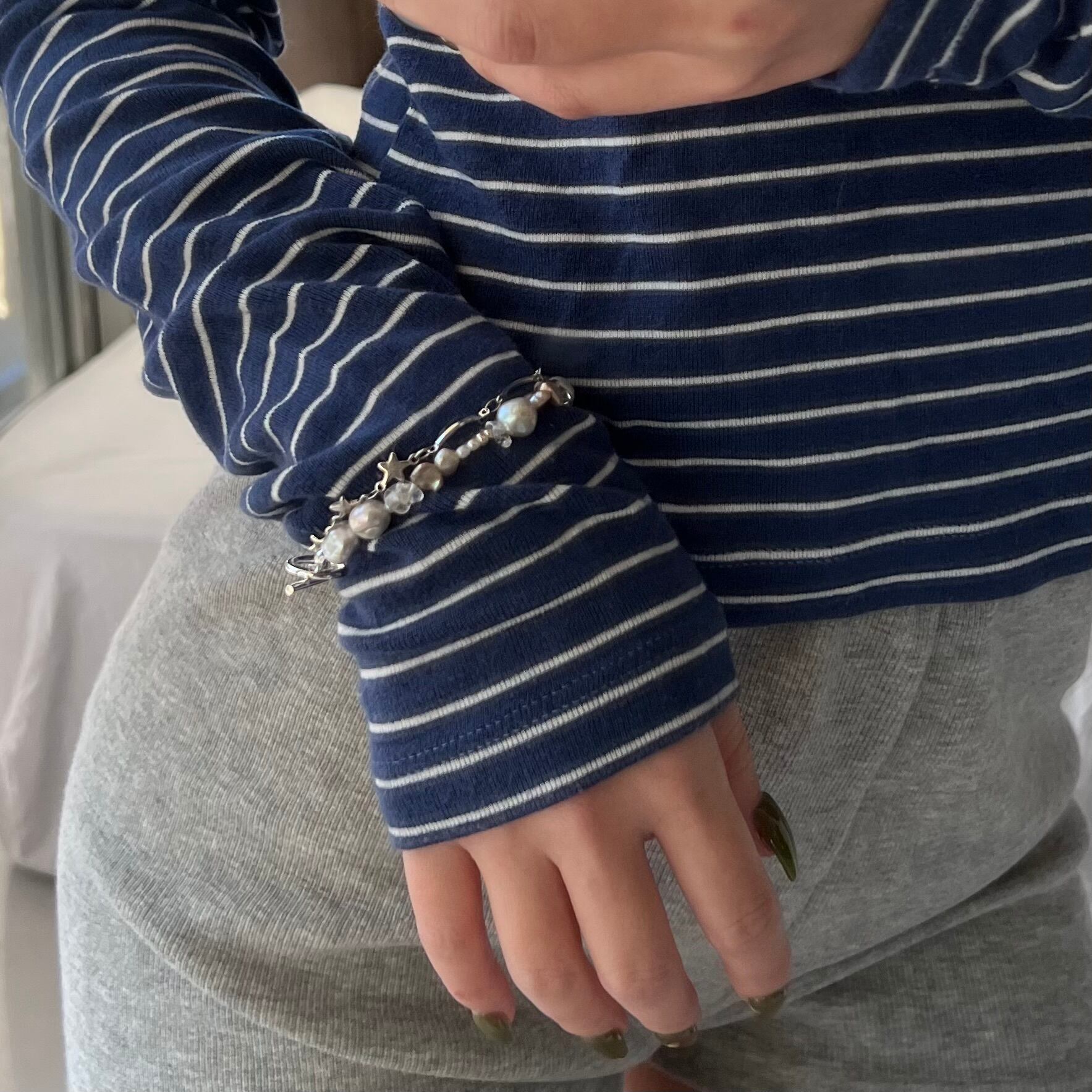 シンプルながらもサイズ感のしっかりとしたパーツが存在感を発揮し、お手元を華奢に可愛らしく見せてくれます.⋆