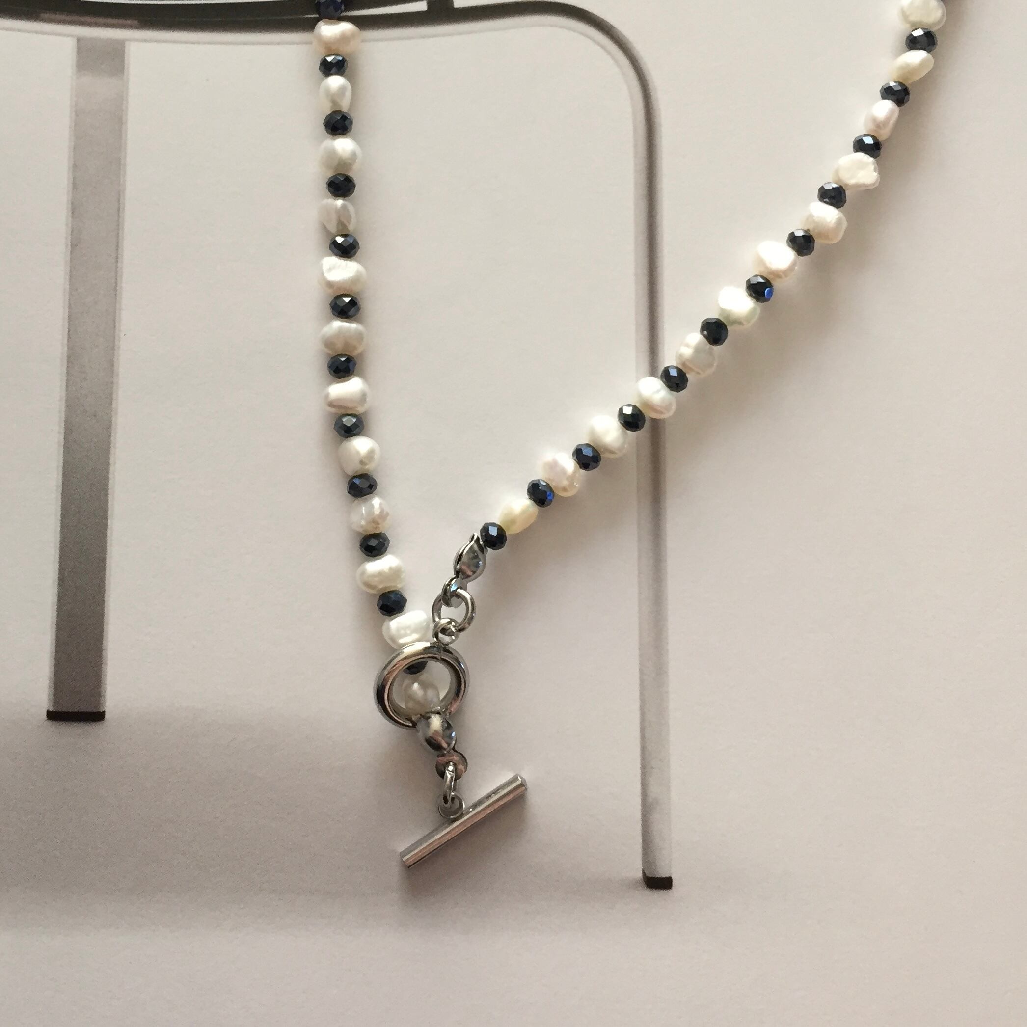 white×navyで寒い季節に似合うドット柄をイメージしたnecklace