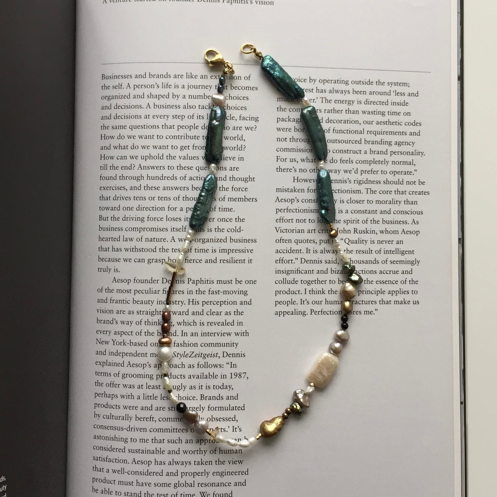 1粒1粒異なる形で合わせることでカジュアルにも身につけられるデザインに。