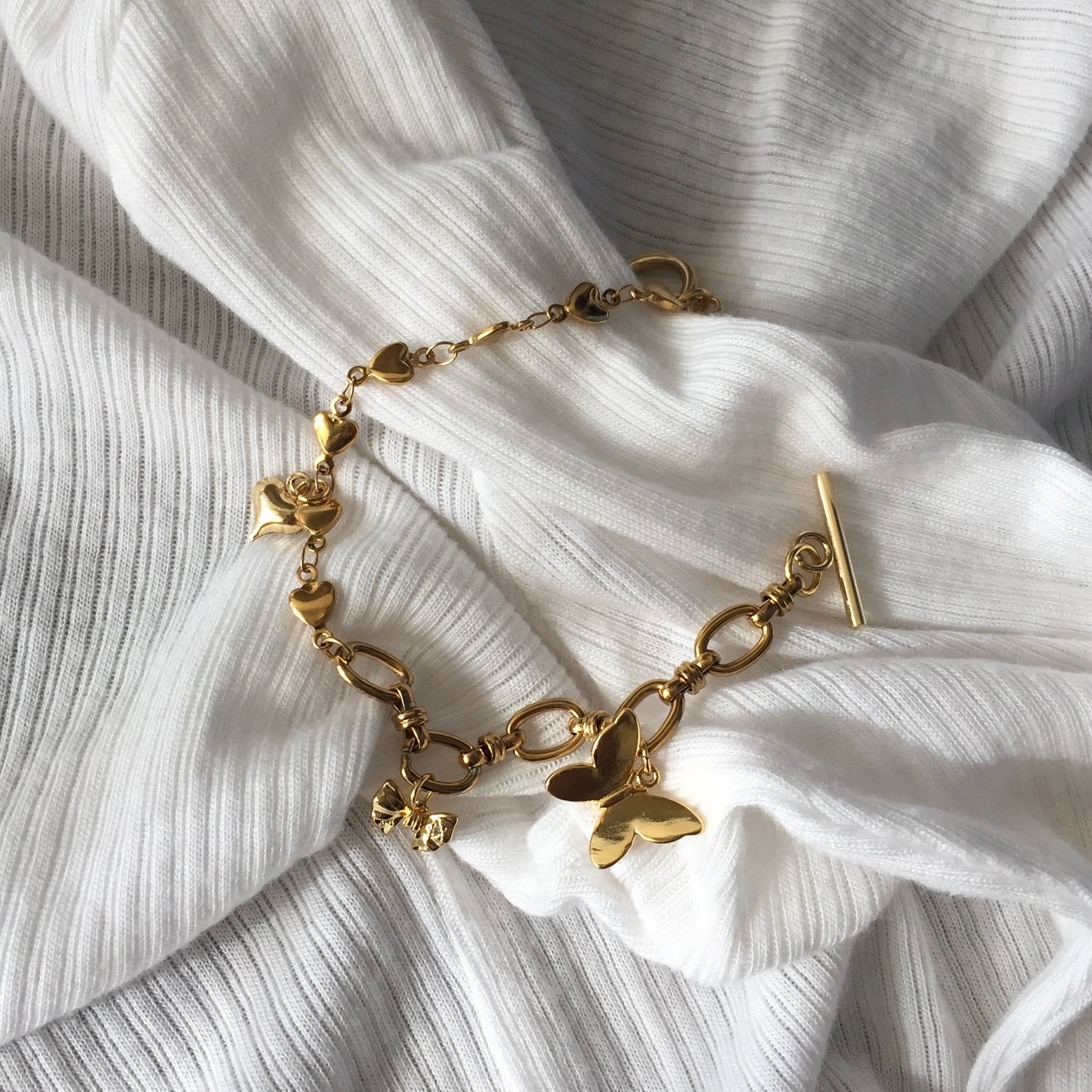 艶やかなgoldで落ち着いた雰囲気を感じる中に、チャーム達で可愛らしさをそっとプラス‧⁺ ⊹˚.