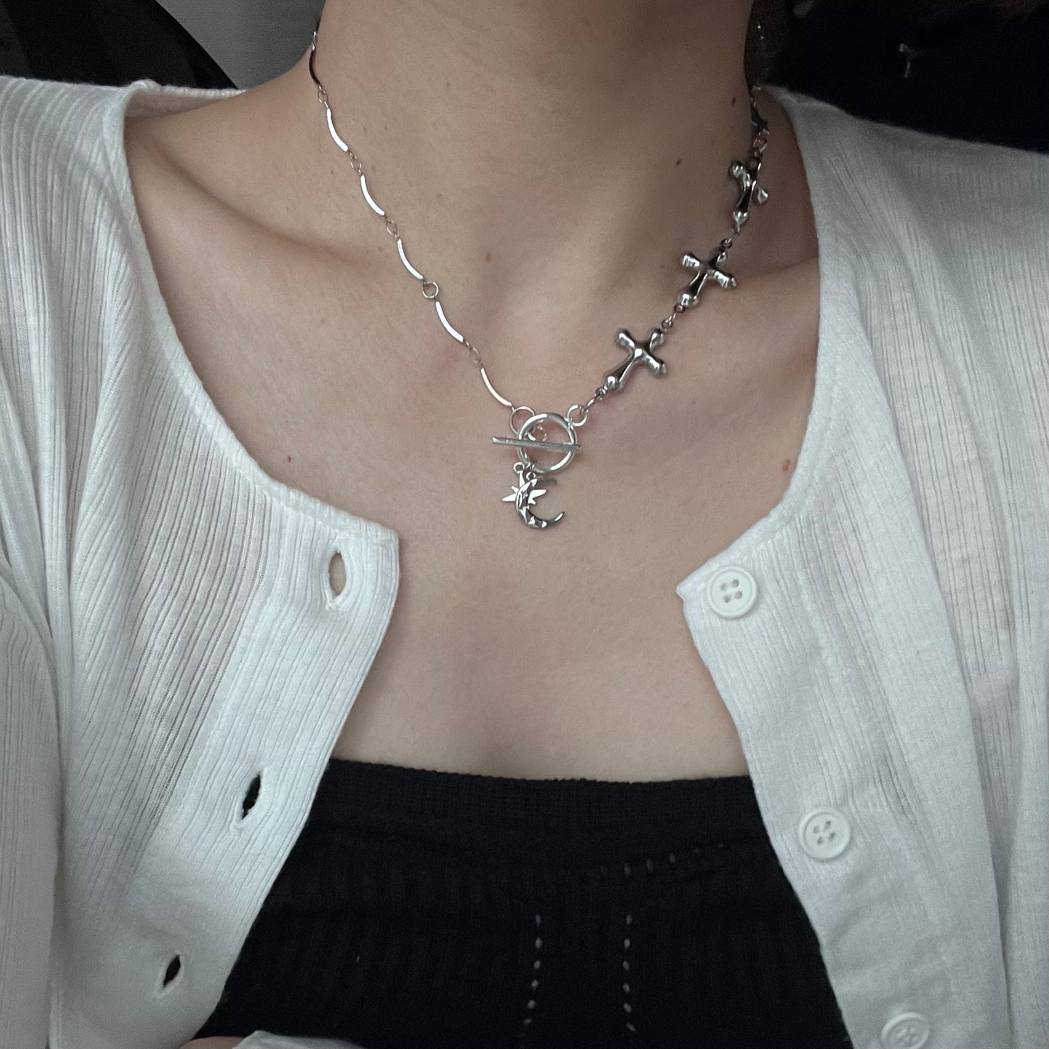 夜中のような静けさを、雰囲気のあるチャームでデザインしたnecklace
