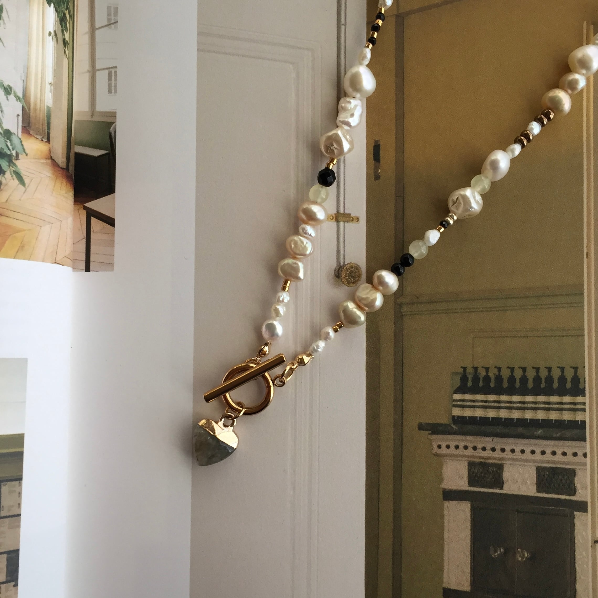 月明かりのように煌めくパールにラフな空気感のビーズを組み合わせ、ナチュラルな雰囲気に。