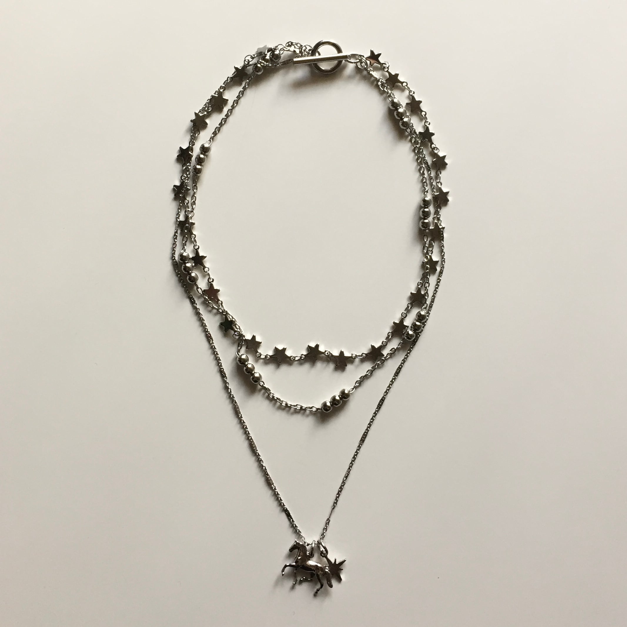 異なる長さのチェーンが重なり合い、シンプルながらも可愛らしさを感じられるnecklace