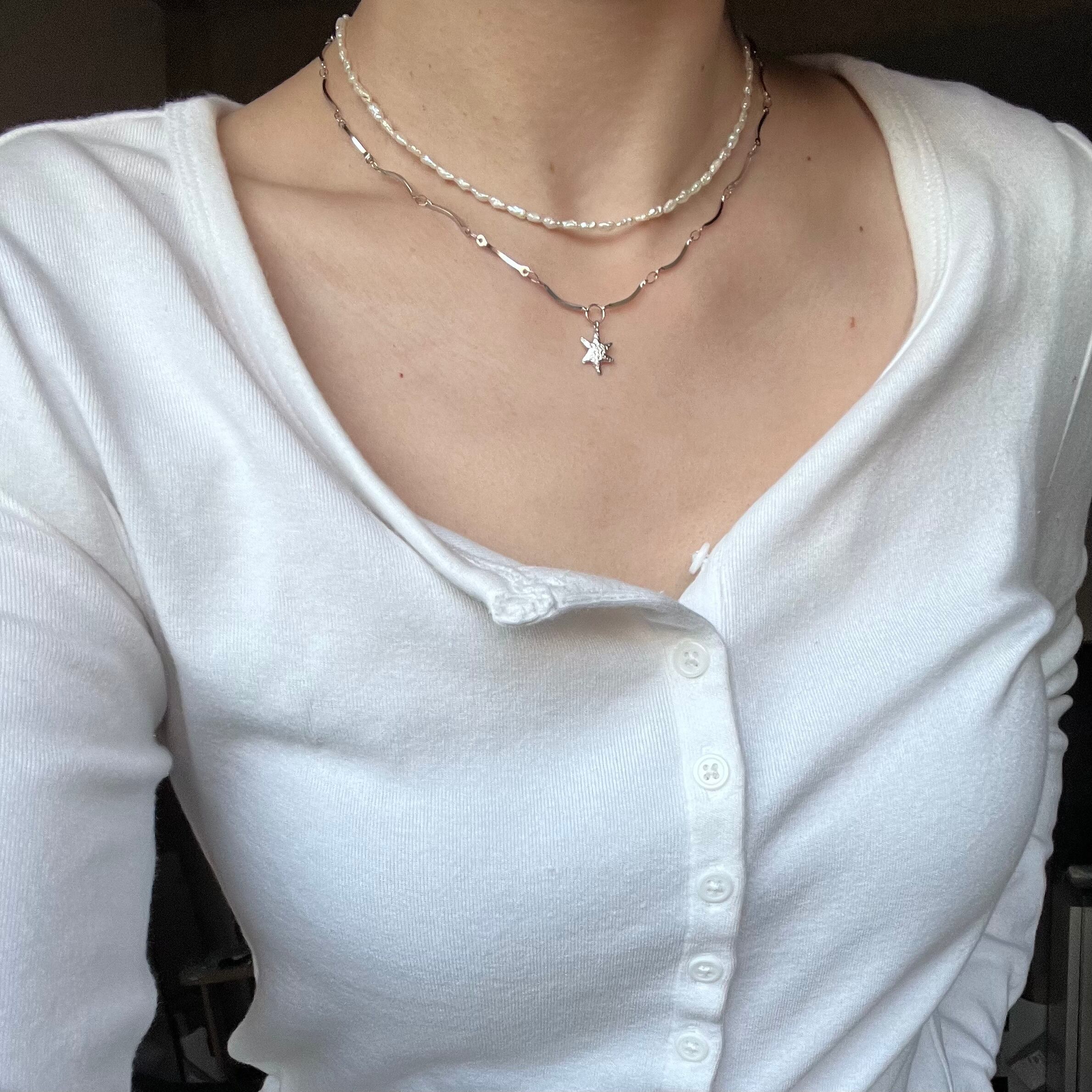 パールで特別感を出しながらも、シンプルなチェーンがカジュアルな雰囲気にしてくれるnecklace
