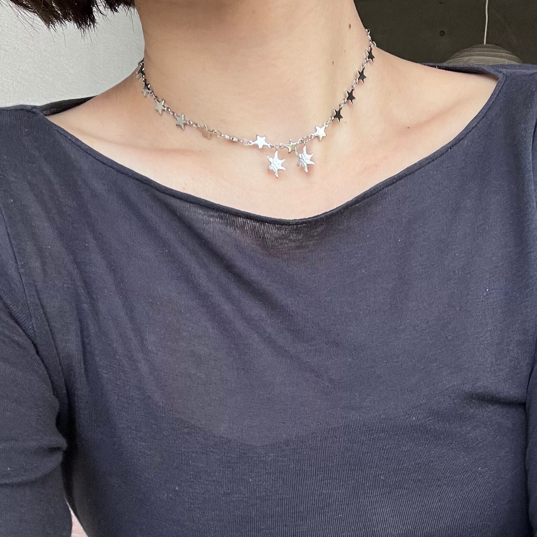 小さな星が連なるチェーンに、さり気ない輝きを添えたnecklace⋆✴︎