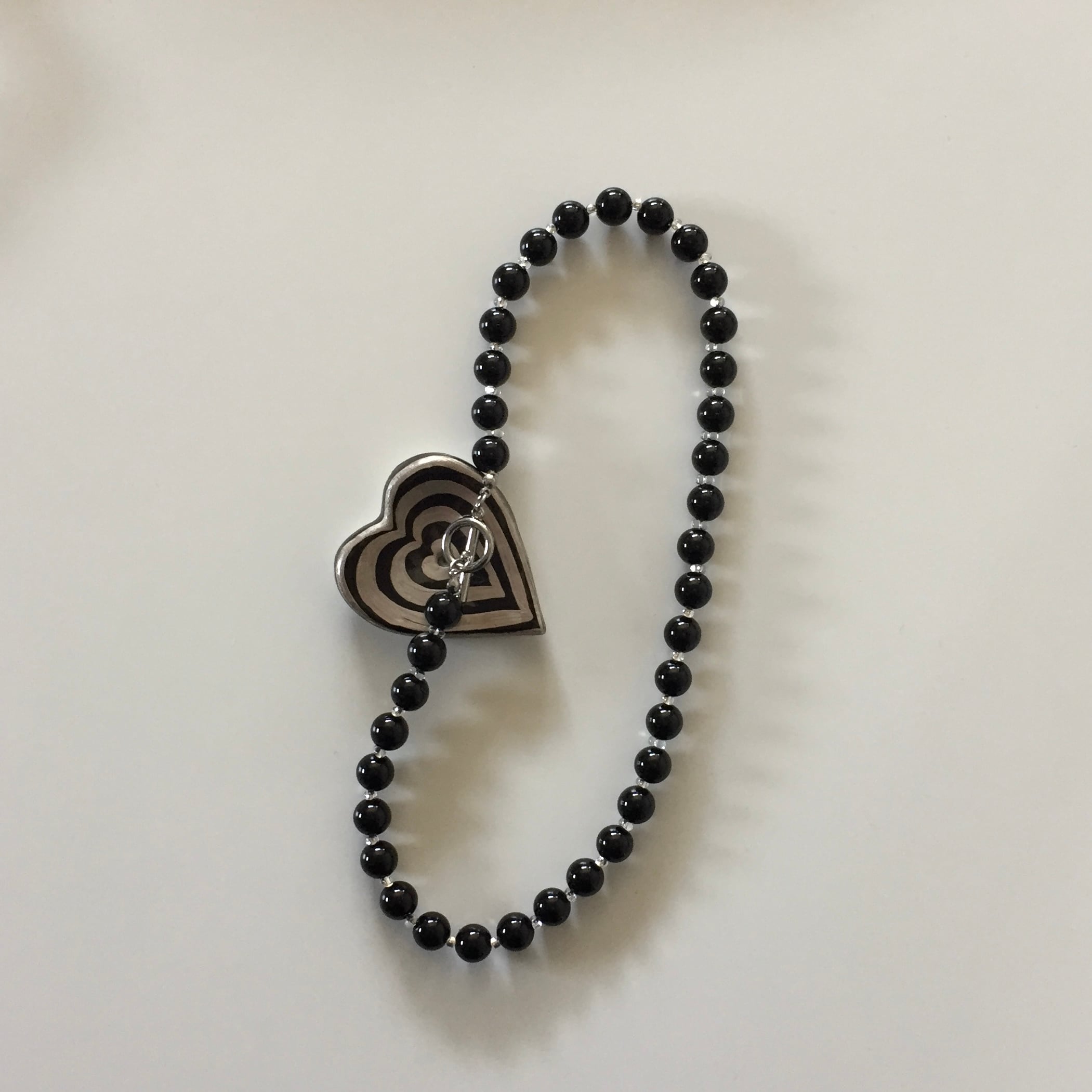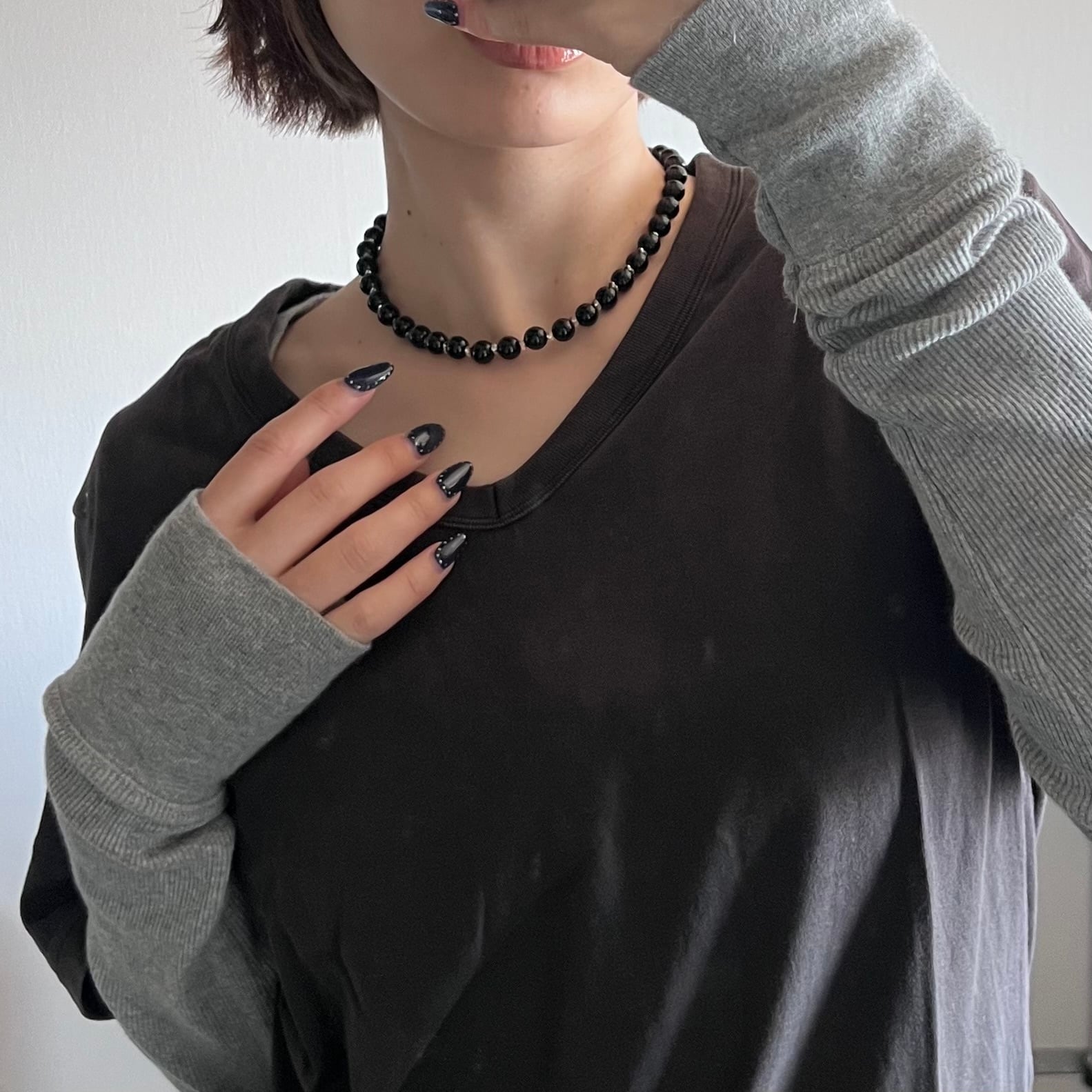 上品な艶感を感じるオニキスにラフなクリアビーズで、デイリー使いのしやすいデザインに。