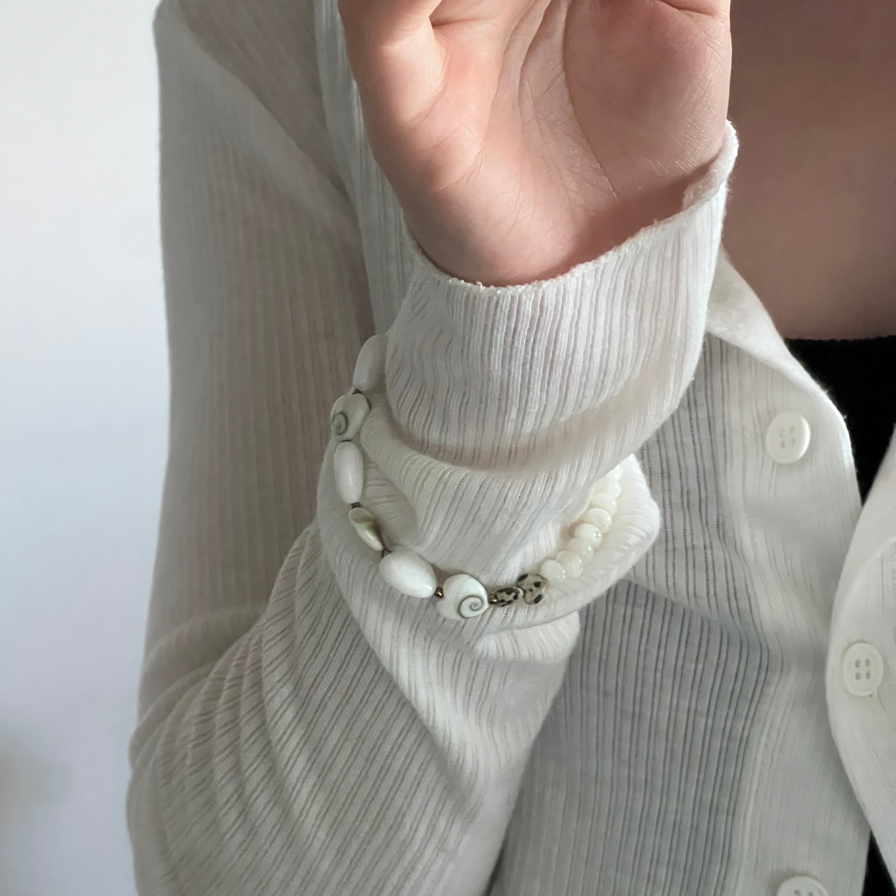 ナチュラルな質感にheartの可愛らしさをトッピングしたbraceletです.⋆.⋆