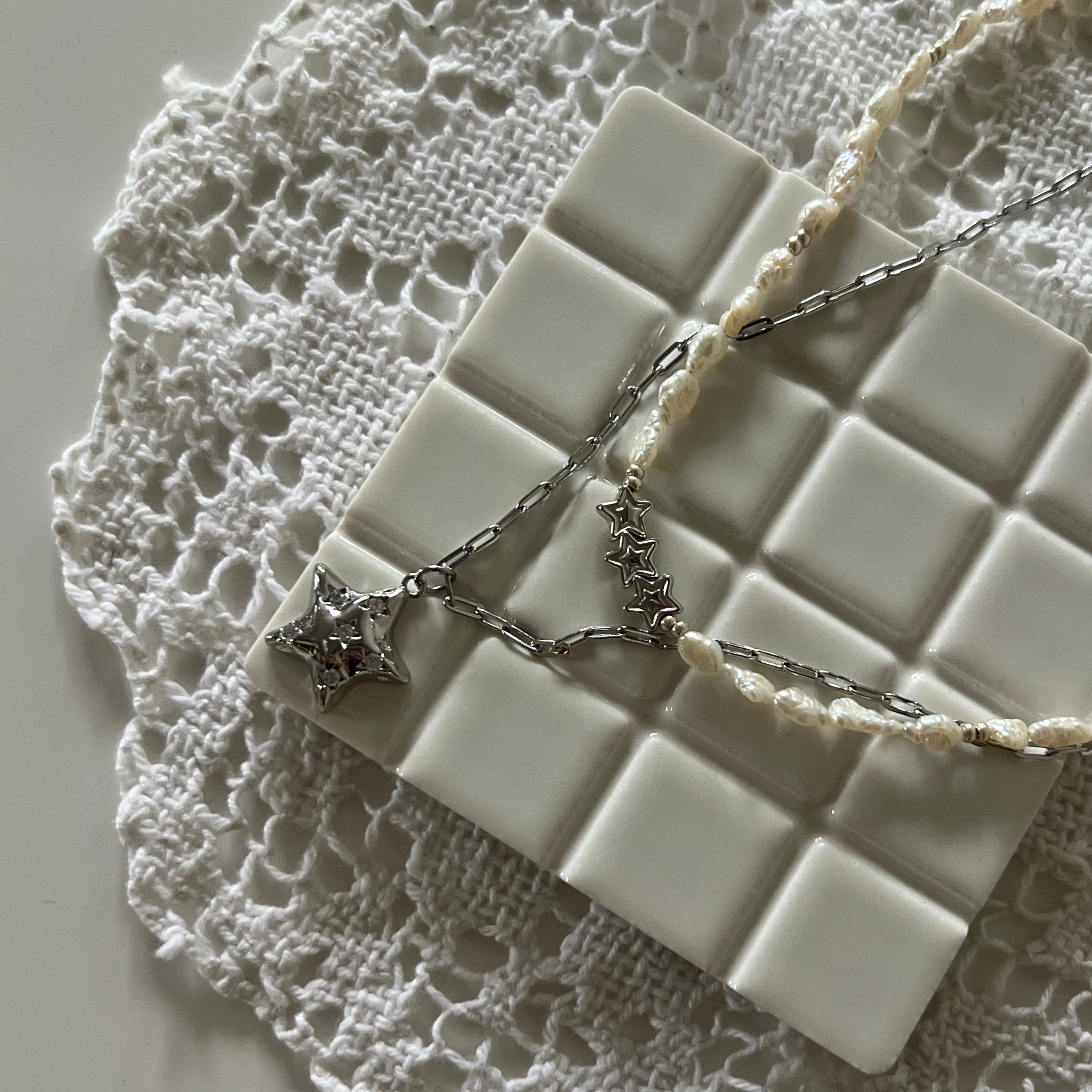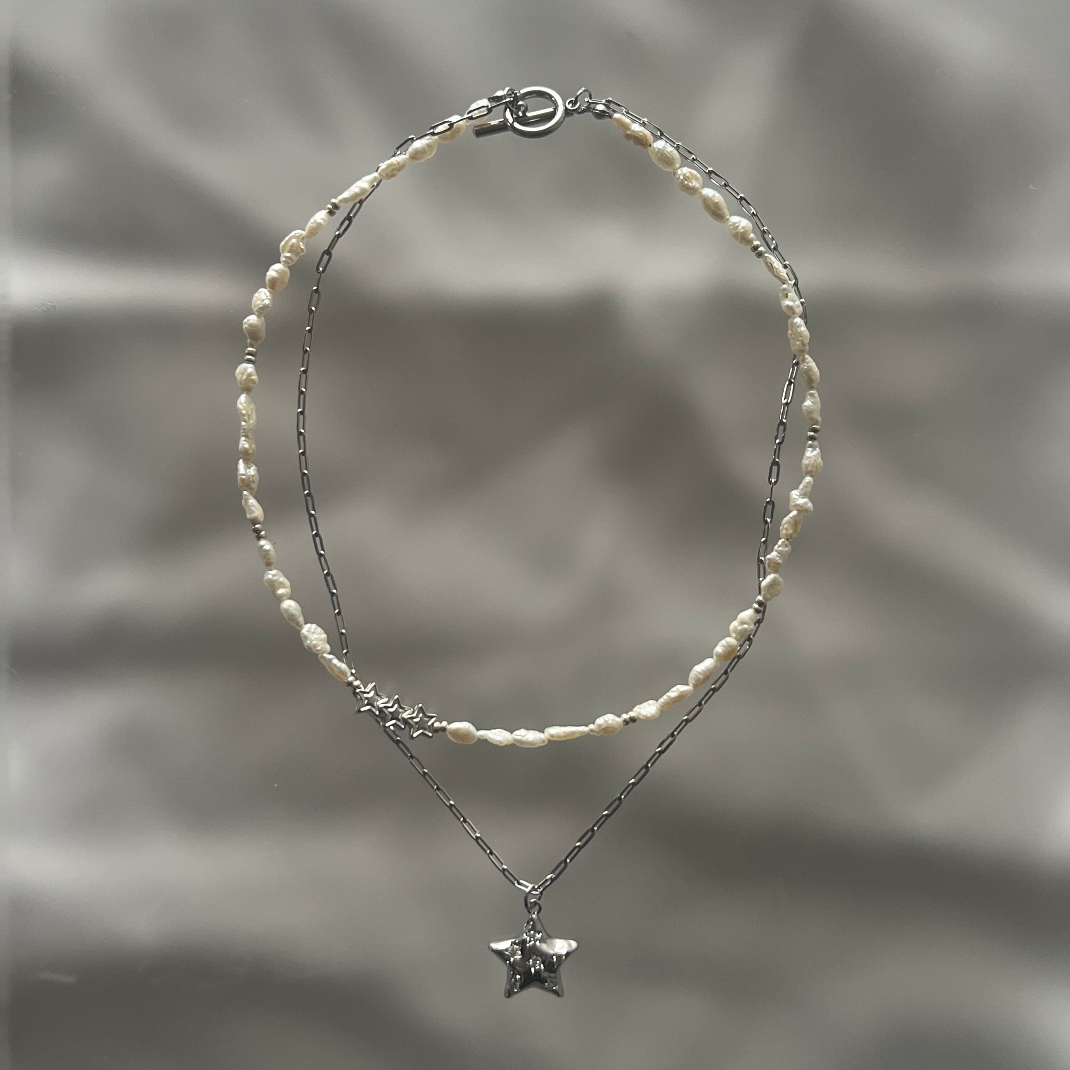 淡水パールにsilverのラフな空気感を合わせた、夏の風のような軽やかなnecklace.⋆