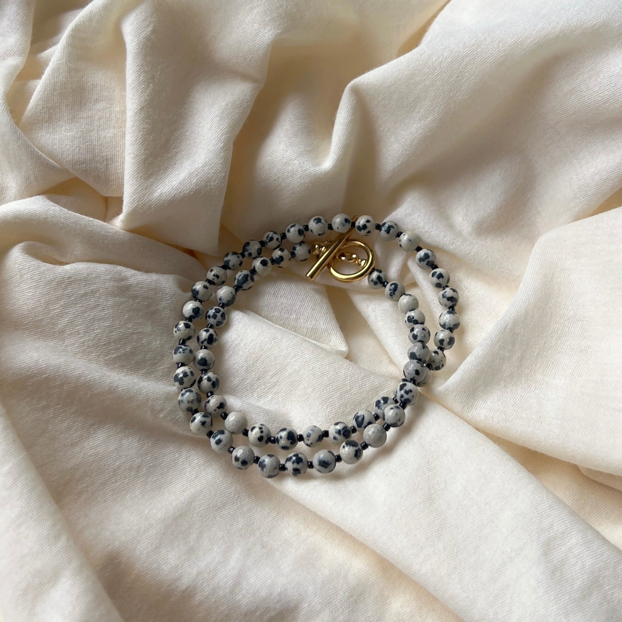 モノトーンの落ち着きの中に、ドット柄のような可愛らしさを感じるnecklace