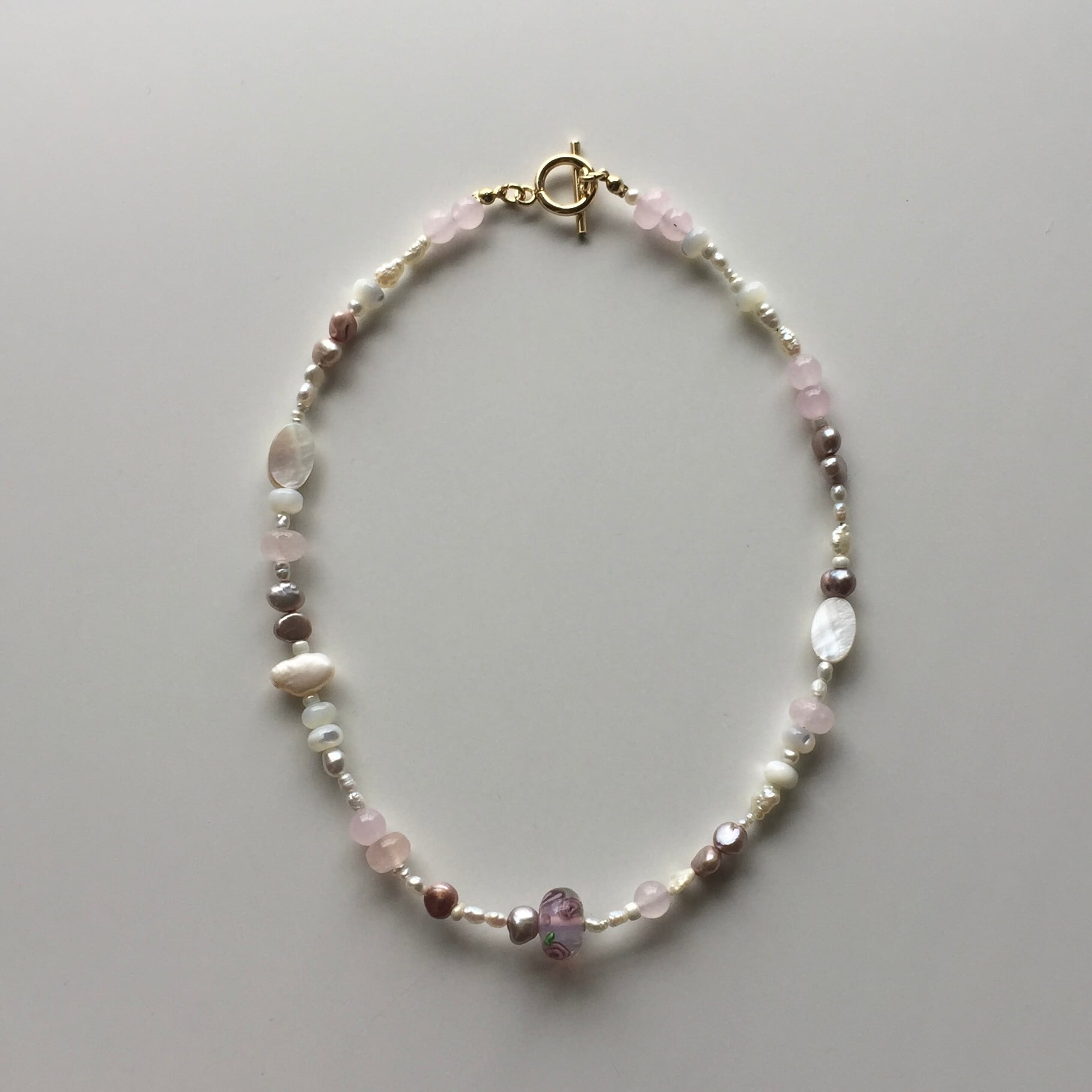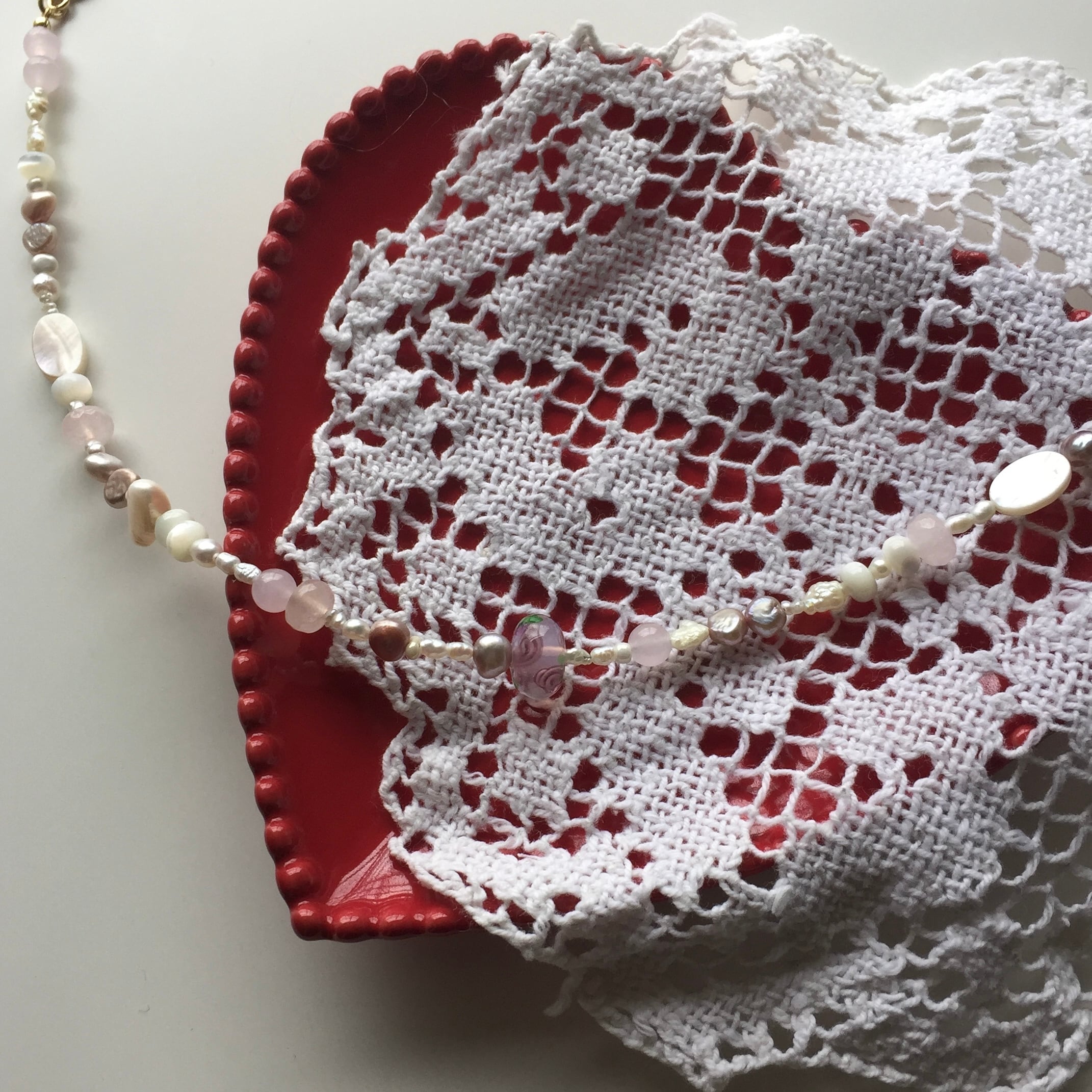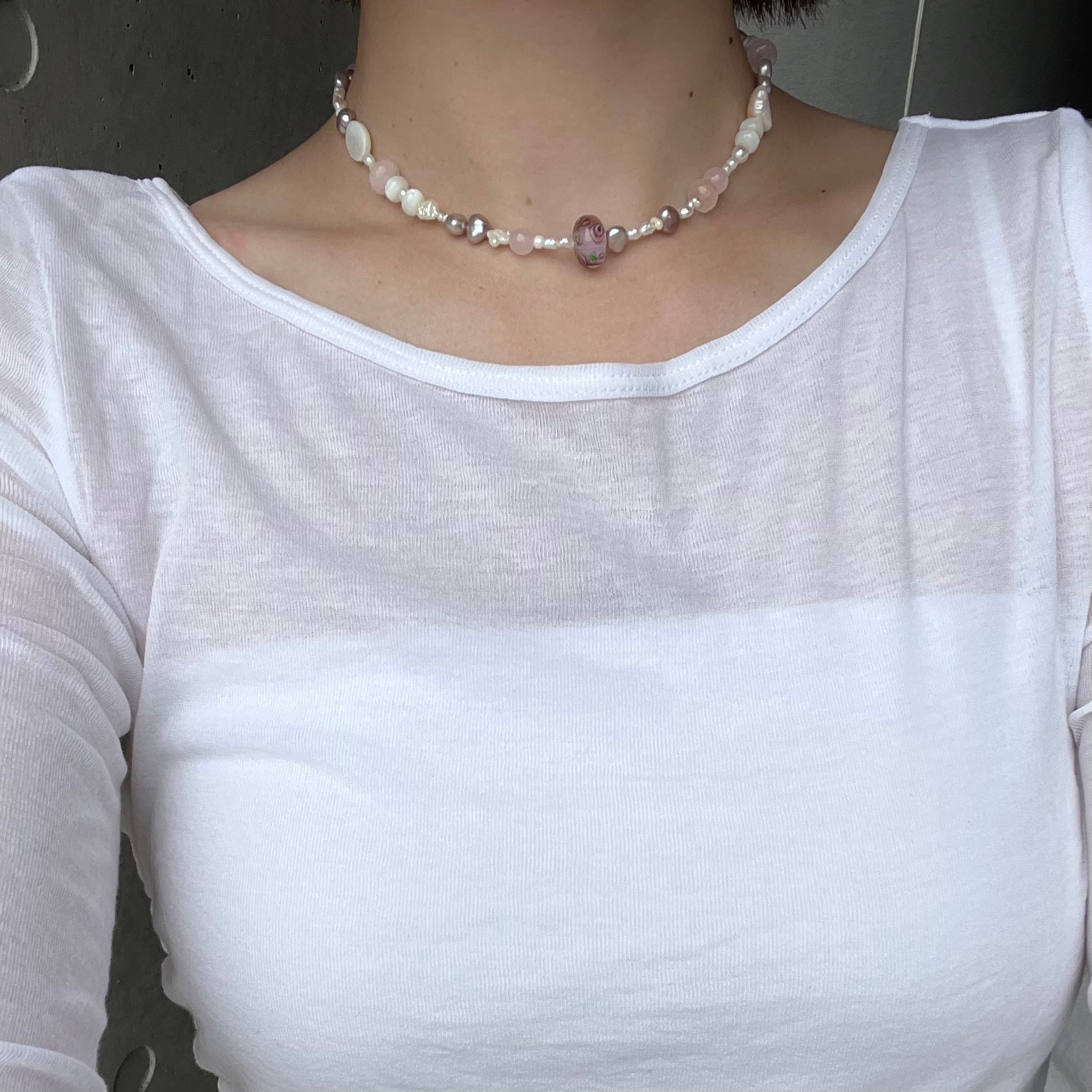 淡いpearlと柔らかい色味が溶け合うように連なる、儚さを感じるnecklace