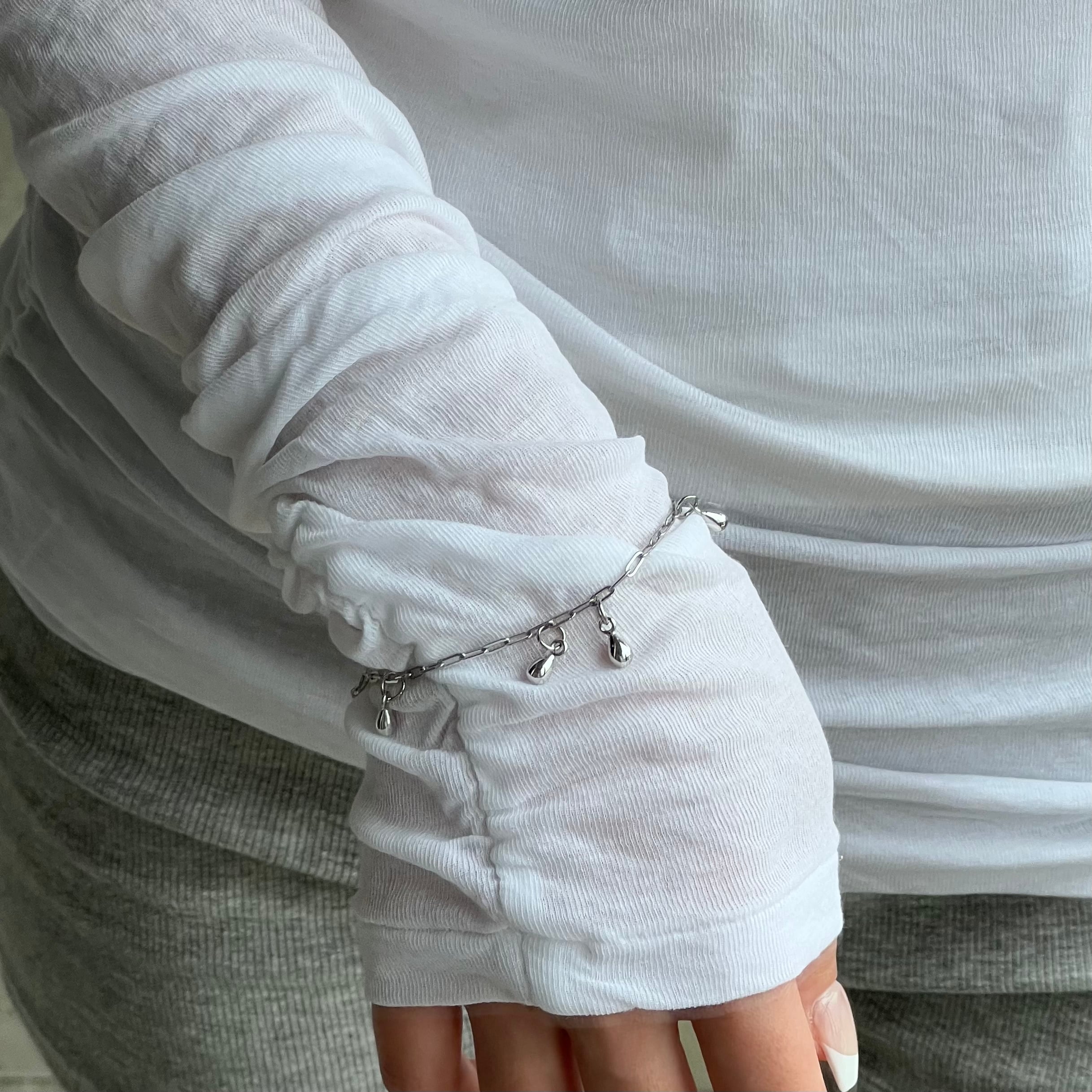 小さな雫が動く度に光を受け入れ、シンプルながらもお手元にさりげなく存在感をプラスしてくれます。