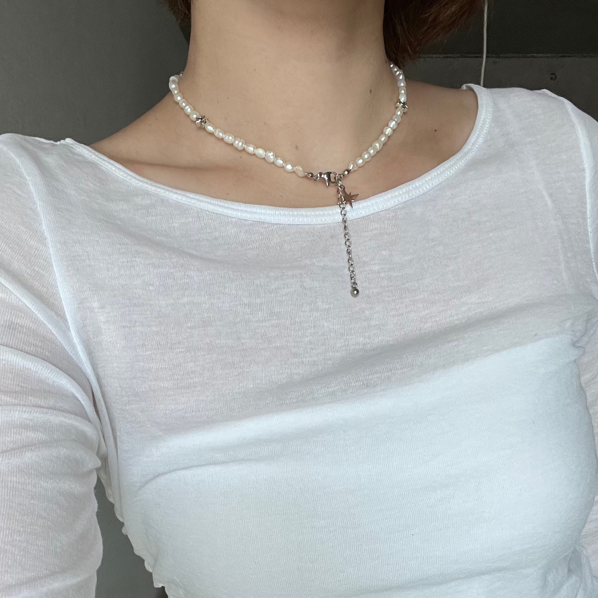 ナチュラルな淡水パールの中に流れる星のような煌めきを埋め込んだ、上品さも感じられるデザインです✩